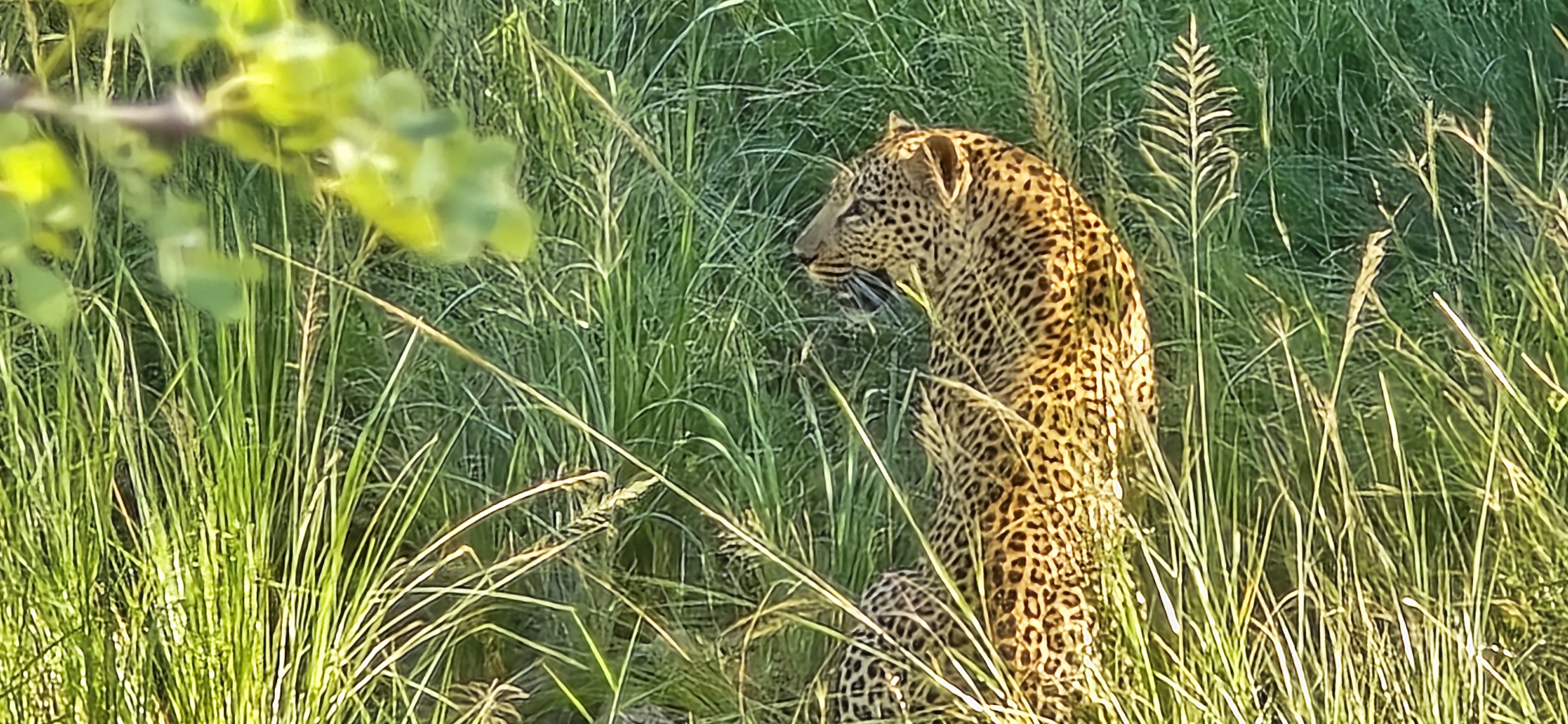 I buskaget i nedre högra hörnet i den svarta luckan ligger en lejonunge och väntar på signal från lejoninnan.